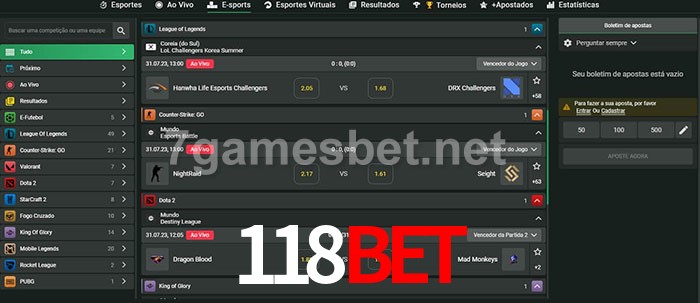 A aposta 118Bet oferece aos jogadores a experiência mais conveniente de apostas em eSports!